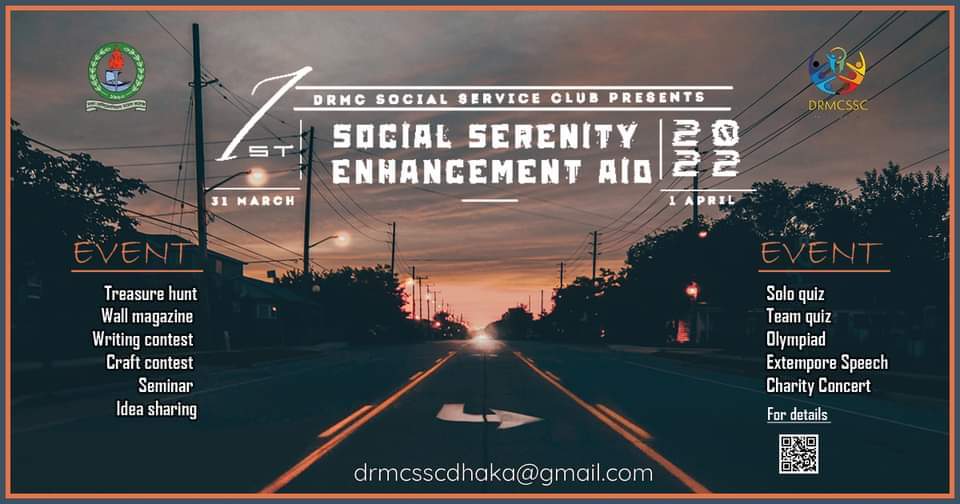 DRMC Social Service club brings you the 1st Social Serenity Enhancement Aid 2022.This time we are looking forward to amaze our participants with interesting events. Our main intention behind this event is to help the ones who are in need of common human rights such as food, clothes, education etc. So we are inviting you guys to our 52 acres of heaven and take a part in our journey to make the world a better place for the neglected peoples. We are expecting your important presence on the respected event dates.